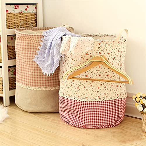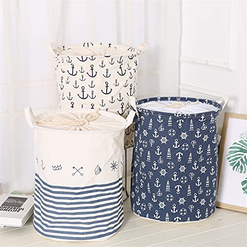 Linnen katoen wasmand vuile kleding opbergmand for grote sundries dozen opvouwbare trekkoord ronde wasmand (Color…