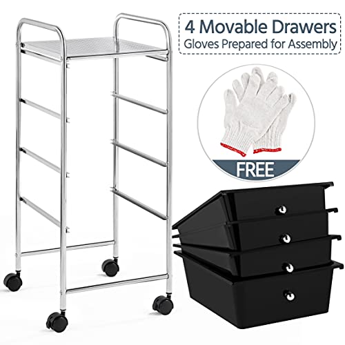 Specification: Yaheetech Badkamertrolley, badkamerwagen, rolcontainer met 4 stapelbare laden, rolwagen van metaal en kunststof…