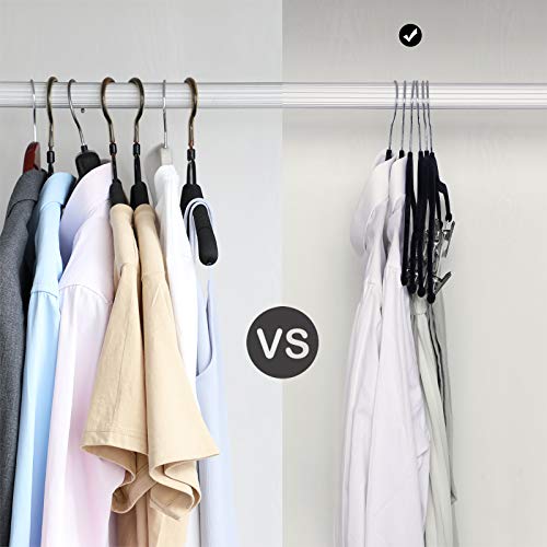 Ruimtebesparend: in vergelijking met normale beugels neemt de kleerhanger minder ruimte in beslag (slechts 0,5 cm dik). Dankzij de hoge belastbaarheid kun je een jas samen met de bijpassende broek ophangen. Daardoor creëer je meer opbergruimte in de kast