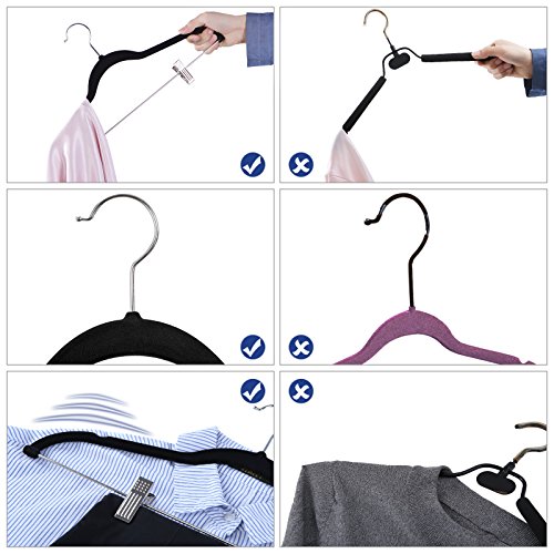 Antislip oppervlak: het fluweel beklede oppervlak van de hoogwaardige kleerhanger voorkomt dat de kleding wegglijdt. Met 2 inkepingen aan de zijkant kun je tops, beha’s enz. veilig bevestigen