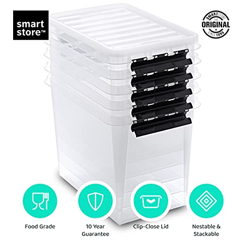 SmartStore grote opbergboxen 61l (5 stuks) verstevigd, transparant, 10 jaar garantie, geschikt voor levensmiddelen…