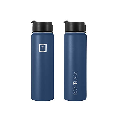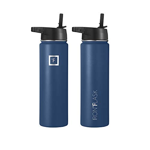 IRON FLASK Sport Waterfles – 650 ml, 3 dopjes (strodopje), vacuüm geïsoleerd roestvrij staal, dubbelwandig, thermomok…