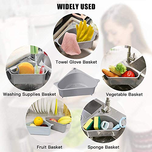 3 Stuks Hoekzeefmand Afvoerzeef Set-1 Hoek Zeef Mand+ 2 RVS Gootsteenzeef,Keuken Organizer Spons Houder,Verstopping…