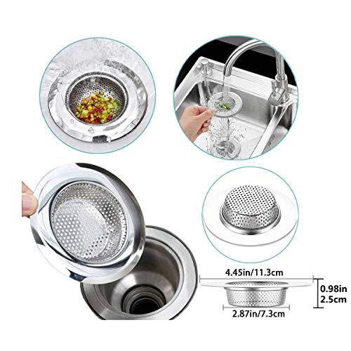 【Premium roestvrijstalen gootsteenzeef】: gemiddeld verdeelde perforaties op de omringende wand en bodem van de mand zorgen ervoor dat het water naadloos doorstroomt en voorkomt dat de zeef zelf verstopt raakt door deeltjes en ander vuil. Polijsten op het oppervlak, geen scherpe randen zorgt voor de veiligheid tijdens het gebruik en voorkomt verwondingen aan uw handen. Buitendiameter 4 inch, binnendia 2,95 inch, geschikt voor de meeste gezinnen.