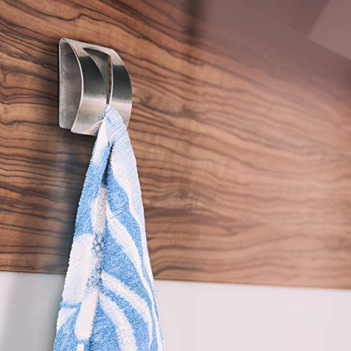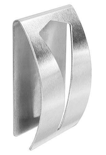 Mumbi zelfklevende handdoekklem van geborsteld roestvrij staal vierkant 4 stuks. De zelfklevende klem van roestvrij staal is veelzijdig in het huishouden te gebruiken. Of het nu in de keuken, badkamer of kantoor is. De handdoekklem kan zonder boren op alle gladde oppervlakken zoals tegels, glas, metaal of hout worden bevestigd. Toepassing: reinig het oppervlak met een schone doek en wacht tot deze volledig droog is. Trek de beschermfolie van de haak eraf, plak de haak op de gewenste positie en druk hem ca. 30 seconden vastgemaakt. De handdoekhaken zijn ideaal voor het ophangen van handdoeken, theedoeken of pannenlappen in badkamer, keuken en in het hele huishouden.