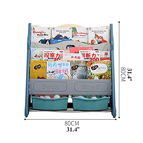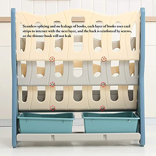 COLiJOL Pe Plastic Boekenplank Kids Floor Stand Boekenkast 4-laags Boek Stands met twee Opbergdozen Picture Book Rack 31…