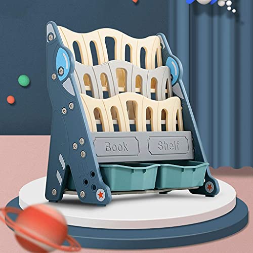 Specification: COLiJOL Pe Plastic Boekenplank Kids Floor Stand Boekenkast 4-laags Boek Stands met twee Opbergdozen Picture Book Rack 31…