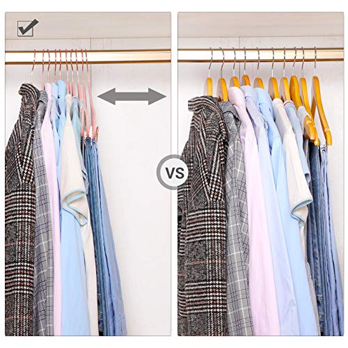 Bespaar ruimte in de KLOOTHERRACK: Vergeleken met normale hangers nemen deze hangers minder ruimte in beslag (slechts 0,5 cm dik). Dankzij de hoge belastbaarheid kunt u ook een jasje met bijpassende broek ophangen. Hierdoor ontstaat meer opbergruimte in de garderobe