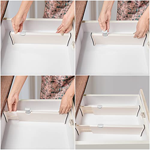 MAKKELIJKE, GEREEDSCHAPSVRIJE INSTALLATIE: Deze gebruiksvriendelijke verdelers zijn makkelijk te installeren zonder gereedschap of lijm benodigd. Met zijn simpele 1 klik systeem installatie en glij mechanisme, zal de verdeler op de plek klikken met zijn sterke veer, om te voorkomen dat ze niet gaan glijden of bewegen. Wat ze georganiseerd op een plek houdt. Om eruit te halen, druk op de knop om ze naar de originele maat te krijgen. Om schoon te maken, gebruik milde zeep en water.