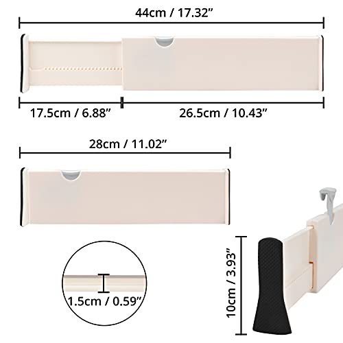 MAKKELIJK UITREKBARE MAAT: Inbegrepen in deze set zijn 4 rechthoekige verdelers, welke gemaakt zijn van zware kwaliteit plastic. De verdelers zijn ral 9001, wat ze modern en makkelijk maakt. Elke individuele verdeler meet L28 x B1,5 x H10 cm. Wanneer volledig uitgerekt, heeft de verdeler een lengte van 44 cm. Deze verdelers passen in de meeste lades. Ze kunnen ook op elkaar gestapeld worden tot op een hoogte van 20 cm, wat perfect is voor diepere lades.