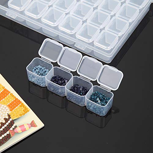 Diamond Painting Opbergdozen, 56 Slots Clear Plastic Diamond Art Opbergcontainers, Diamant Borduurdoos /Kralen Opbergdoos/Diamant Schilderij Accessoires voor DIY Craft (Transparant)