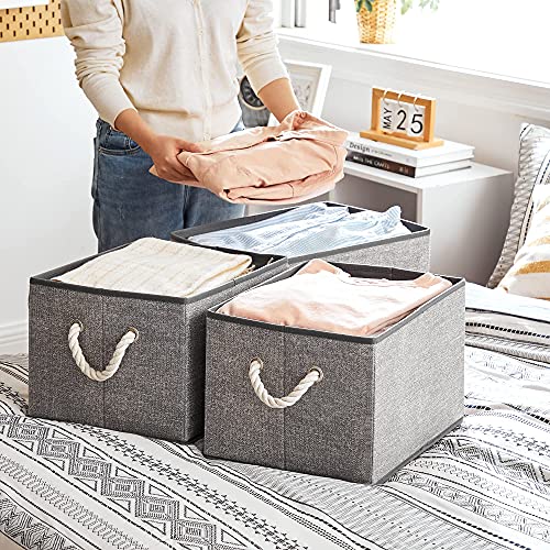 SONGMICS Opbergdozen, set van 3, stoffen dozen zonder deksel, met handgrepen, 40 x 30 x 25 cm, linnen look, grijs…