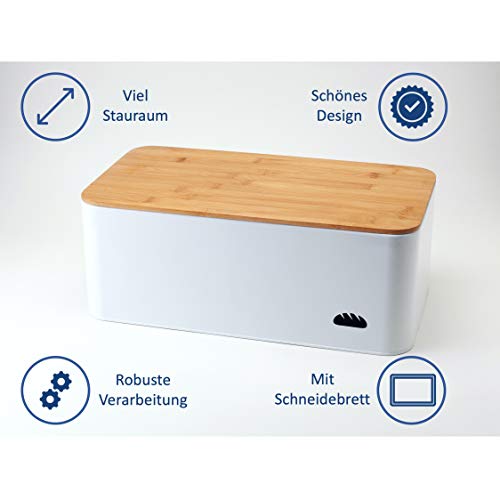 ✅ Inclusief snijplank: met het robuuste houten deksel, dat tegelijkertijd als snijplank is ontworpen, heb je bovendien een snijplank direct binnen handbereik. De broodtrommel wordt daardoor een nuttige allround hulp in je keuken.