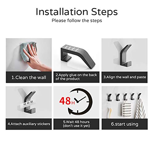 【Handdoekhaak, wandhanddoekhaak, hoogwaardig aluminium, dubbele kleerhanger voor badkamer, keuken, kantoor, boerderij, verpakking van 6 stuks, geanodiseerd (zwart)】