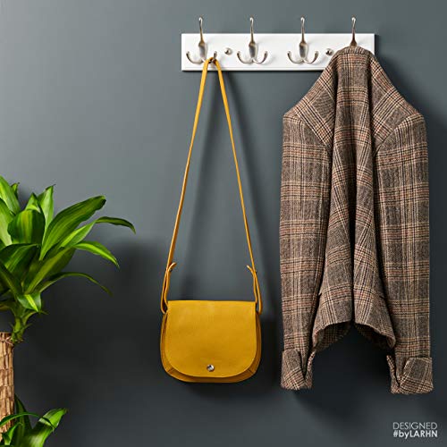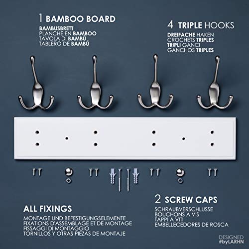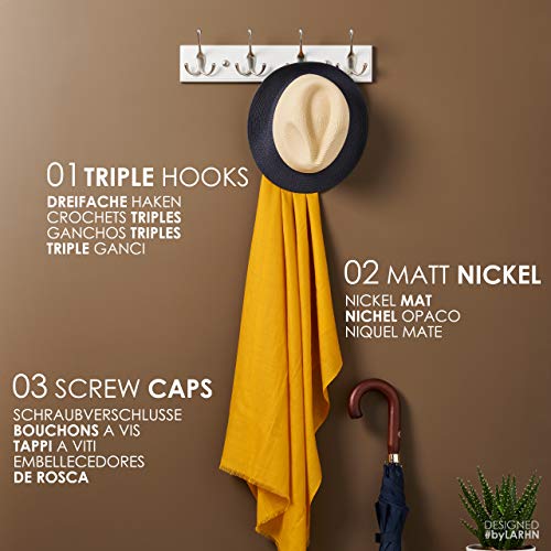 LARHN Kapstok Muur Mount Wit en Zilver – 4 Drievoudige Kapstokhaken – 42 cm – Wandkapstok Wit voor Gangen, Garderobes…