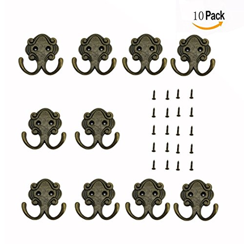 Specification: OFKPO 10 stuks retro kledinghaken, mantelhaken/dubbele haken met schroeven voor badkamer, keuken en slaapkamer.