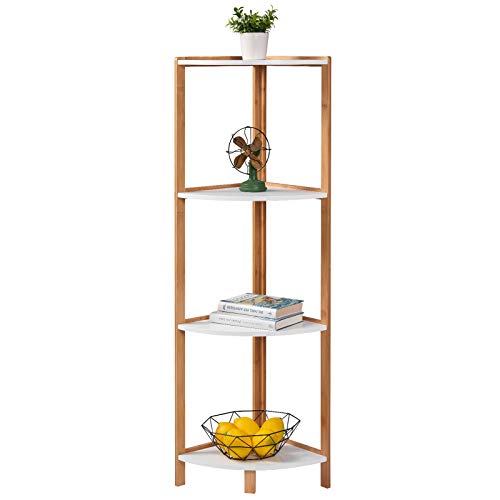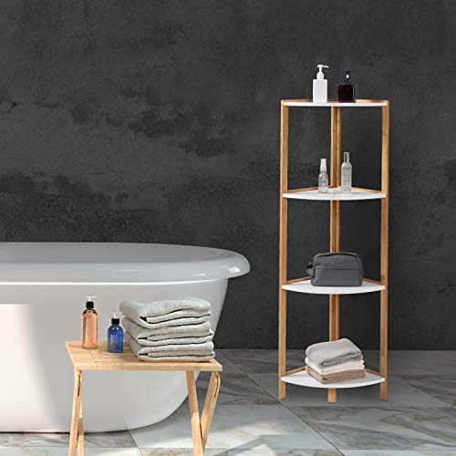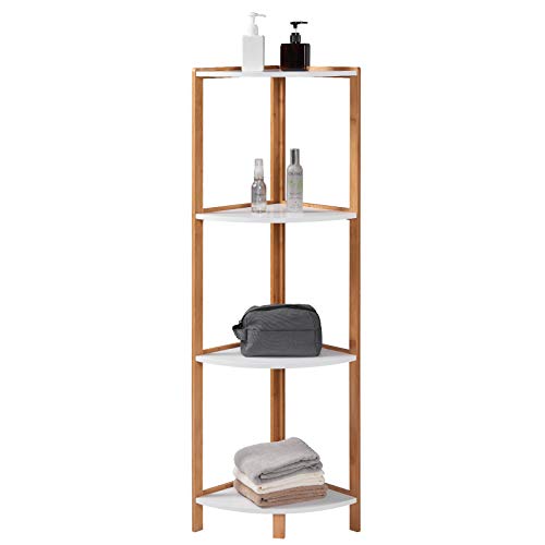 WOLTU RGB9357ws2 Hoekplank Bamboe & MDF Badkameropslagplank 4-laags keukenplank, 30x30x115cm