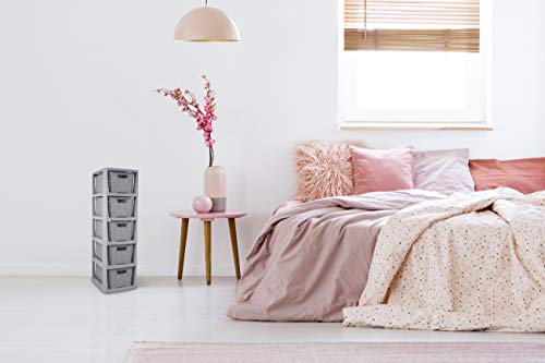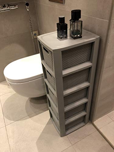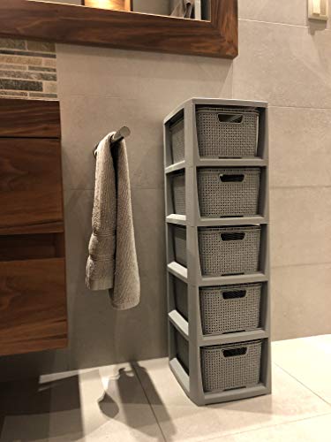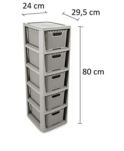 BranQ – Home essential Plank in rotan design, BPA-vrije kunststof PP, lichtgrijs, 29,5 x 24 x 80 cm, 5 manden