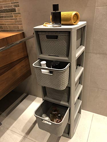 Specification: BranQ – Home essential Plank in rotan design, BPA-vrije kunststof PP, lichtgrijs, 29,5 x 24 x 80 cm, 5 manden