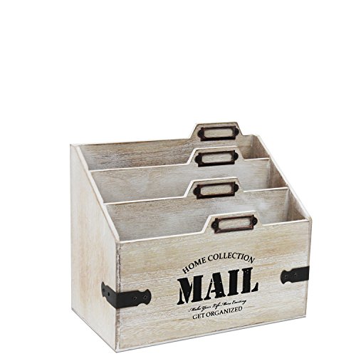 Specification: Wohaga® houten bureau organizer ‘Mail’ met 3 houten vakken, brievenhouder, brievenstandaard, brievenplank, brievenbak